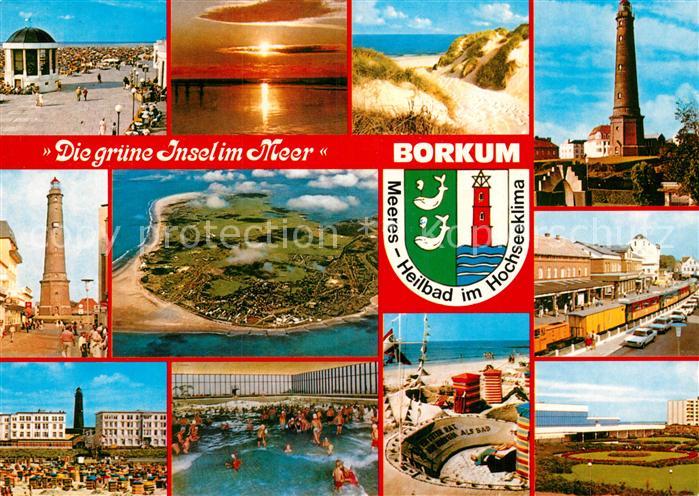 72970521 alte Postkarte Borkum Fliegeraufnahme Leuchtturm Strand Bahnhof Schwimmbad postalisch gelaufen Erhaltung siehe scans [LiesaD40] KatCode: 11110003457002