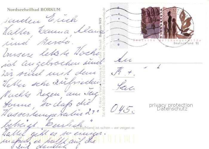 73159563 alte Postkarte Borkum Fliegeraufnahmen Strand Promenade Leuchtturm Bischmarckstrasse Kurhaus Klinik postalisch gelaufen Erhaltung siehe scans [FriedD77] KatCode: 11110003457002