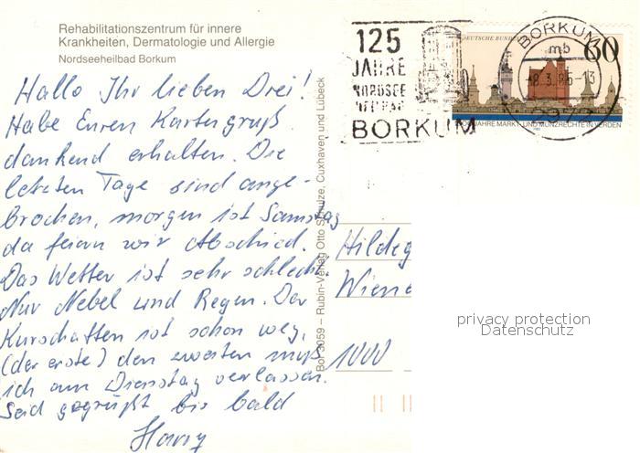 73643846 alte Postkarte Borkum Klinik Borkum-Riff Rehazentrum postalisch gelaufen Erhaltung siehe scans [FriedD77] KatCode: 11110003457002