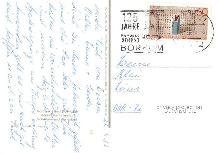 73160198 alte Postkarte Borkum Meerwasser Hallenbad Schwimmbad Wellenbad postalisch gelaufen Erhaltung siehe scans [KathaD81] KatCode: 11110003457002