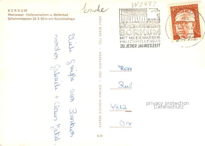 73121312 alte Postkarte Borkum Meerwasser Hallenschwimm Wellenbad Strandpromenade postalisch gelaufen Erhaltung siehe scans [KathaD81] KatCode: 11110003457002