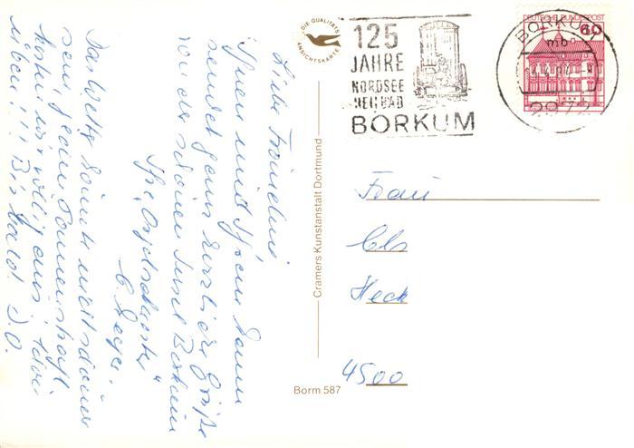 73914629 alte Postkarte Borkum Nordseebad Fliegeraufnahme Grosser Leuchtturm Elektr Leuchtturm Strand Musikpavillon Promenade postalisch gelaufen Erhaltung siehe scans [WerneD78] KatCode: 11110003457002