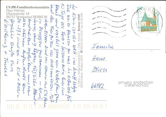 71988055 alte Postkarte BORKUM Nordseebad Niedersachsen CVJM Haus Viktoria Fliegeraufnahme postalisch gelaufen Erhaltung siehe scans KatCode: 11110003457002