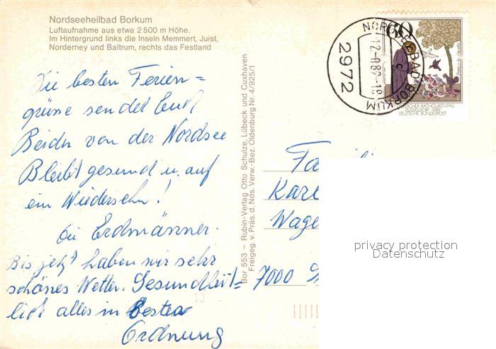 72726688 alte Postkarte BORKUM Nordseebad Niedersachsen Fliegeraufnahme postalisch gelaufen Erhaltung siehe scans [WerneD78] KatCode: 11110003457002