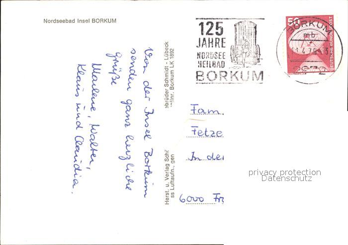 72450551 alte Postkarte BORKUM Nordseebad Niedersachsen Fliegeraufnahme postalisch gelaufen Erhaltung siehe scans KatCode: 11110003457002