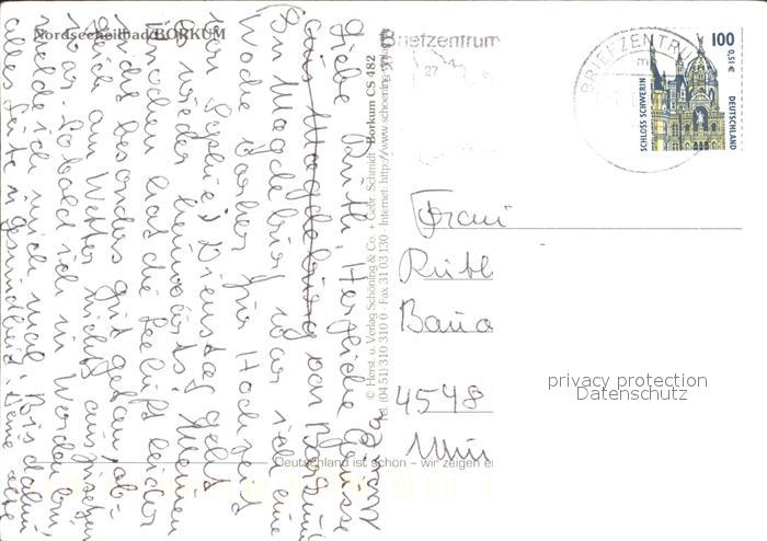 72135887 alte Postkarte BORKUM Nordseebad Niedersachsen Fliegeraufnahme postalisch gelaufen Erhaltung siehe scans KatCode: 11110003457002