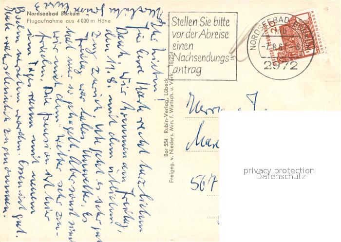 73701106 BORKUM Nordseebad Niedersachsen Fliegeraufnahme postalisch gelaufen Erhaltung siehe scans [WerneD78] alte Postkarte Wern Katcode 11110003457002