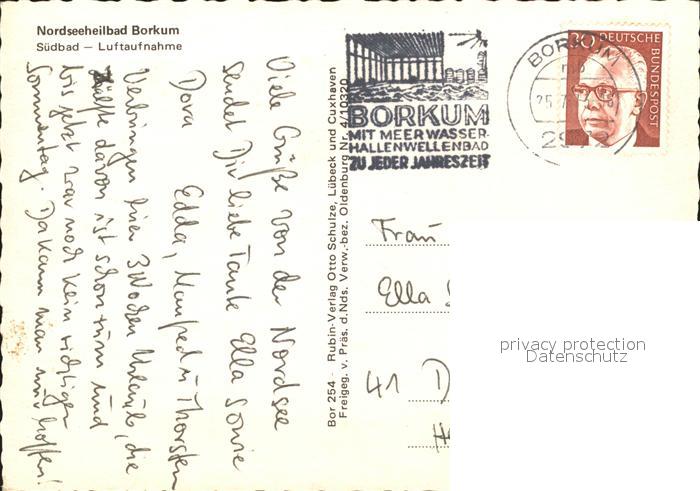 71914238 alte Postkarte BORKUM Nordseebad Niedersachsen Fliegeraufnahme postalisch gelaufen Erhaltung siehe scans KatCode: 11110003457002