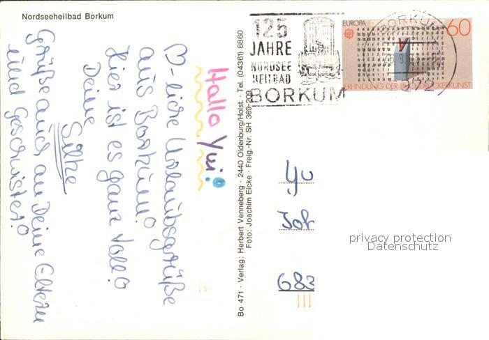 71914176 alte Postkarte BORKUM Nordseebad Niedersachsen Fliegeraufnahme postalisch gelaufen Erhaltung siehe scans KatCode: 11110003457002