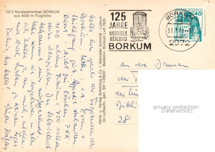 73661466 BORKUM Nordseebad Niedersachsen Fliegeraufnahme postalisch gelaufen Erhaltung siehe scans [WerneD78] alte Postkarte Wern Katcode 11110003457002