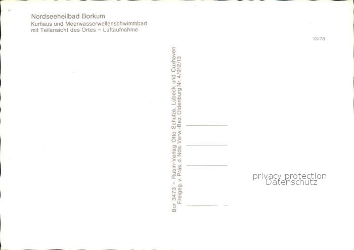 72611724 BORKUM Nordseebad Niedersachsen Fliegeraufnahme Kurhaus Meerwasserwellenbad Leuchtturm postalisch nicht gelaufen Erhaltung siehe scans [AndreD76] KatCode: 11110003457002