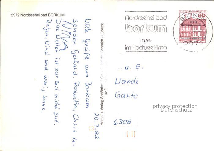 72450562 alte Postkarte BORKUM Nordseebad Niedersachsen Fliegeraufnahme Strand Duenen Kutsche postalisch gelaufen Erhaltung siehe scans KatCode: 11110003457002