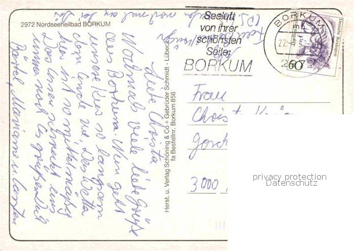 72854559 alte Postkarte BORKUM Nordseebad Niedersachsen Fliegeraufnahme Strand Tuerme postalisch gelaufen Erhaltung siehe scans [LiesaD40] KatCode: 11110003457002