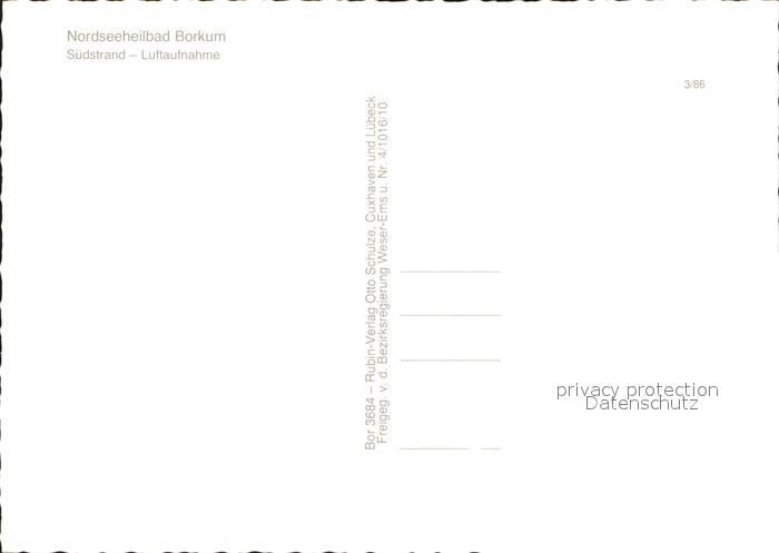 72349138 BORKUM Nordseebad Niedersachsen Fliegeraufnahme Suedstrand postalisch nicht gelaufen Erhaltung siehe scans KatCode: 11110003457002