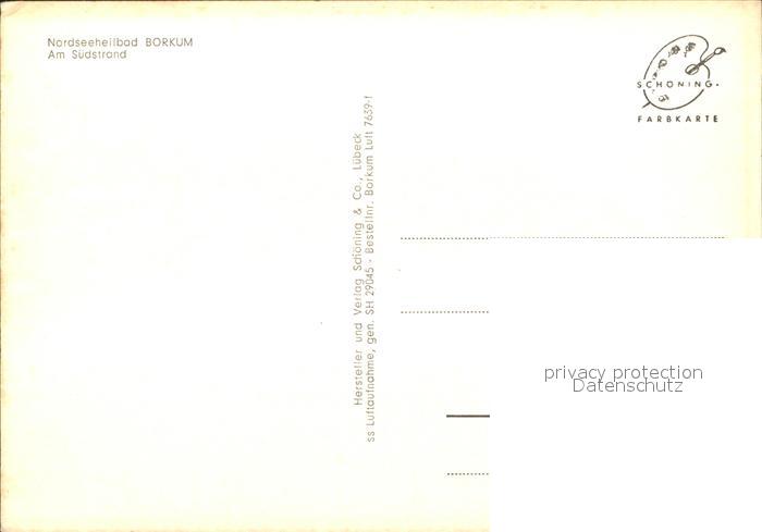 71952526 BORKUM Nordseebad Niedersachsen Fliegeraufnahme Suedstrand postalisch nicht gelaufen Erhaltung siehe scans KatCode: 11110003457002
