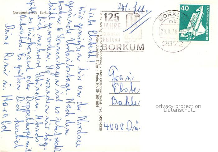 72960102 alte Postkarte BORKUM Nordseebad Niedersachsen Fliegeraufnahme postalisch gelaufen Erhaltung siehe scans [PaolaD17] KatCode: 11110003457002