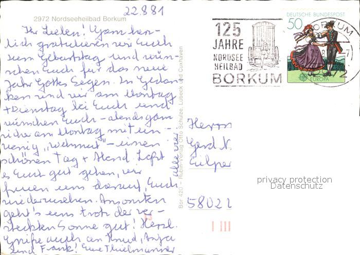72425241 alte Postkarte BORKUM Nordseebad Niedersachsen Heilbad Ortsansichtn postalisch gelaufen Erhaltung siehe scans KatCode: 11110003457002