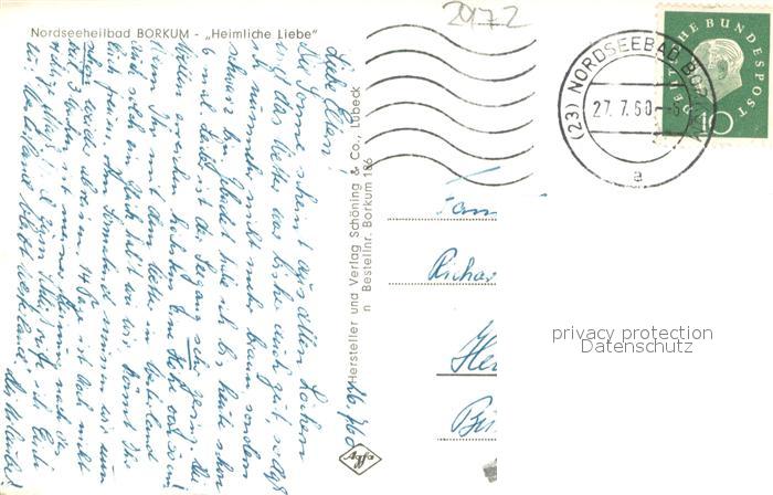 73694686 BORKUM Nordseebad Niedersachsen Heimliche Liebe Gaststaette Strandpromenade Nordseeheilbad postalisch gelaufen Erhaltung siehe scans [FriedD77] alte Postkarte Frie Katcode 11110003457002