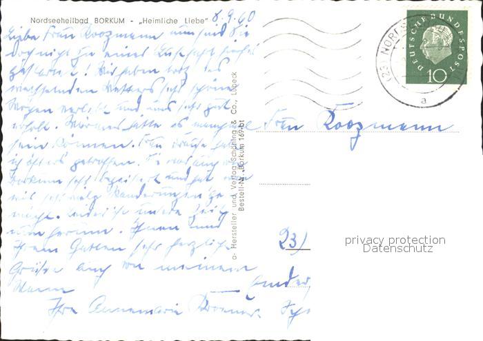 72306485 alte Postkarte BORKUM Nordseebad Niedersachsen Heimliche Liebe postalisch gelaufen Erhaltung siehe scans KatCode: 11110003457002