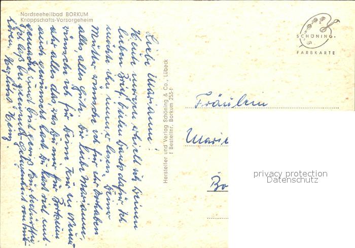 72332358 BORKUM Nordseebad Niedersachsen Knappschafts Vorsorgeheim postalisch nicht gelaufen Erhaltung siehe scans KatCode: 11110003457002