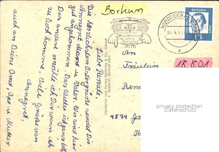 72133152 alte Postkarte BORKUM Nordseebad Niedersachsen Leuchttuermen postalisch gelaufen Erhaltung siehe scans KatCode: 11110003457002