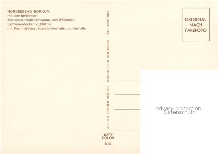 73730731 BORKUM Nordseebad Niedersachsen Meerwasser Hallenschwimm- und Wellenbad Kurmittelhaus Strandpromenade Kurhalle Flugplatz postalisch nicht gelaufen Erhaltung siehe scans [FriedD77] Frie Katcode 11110003457002