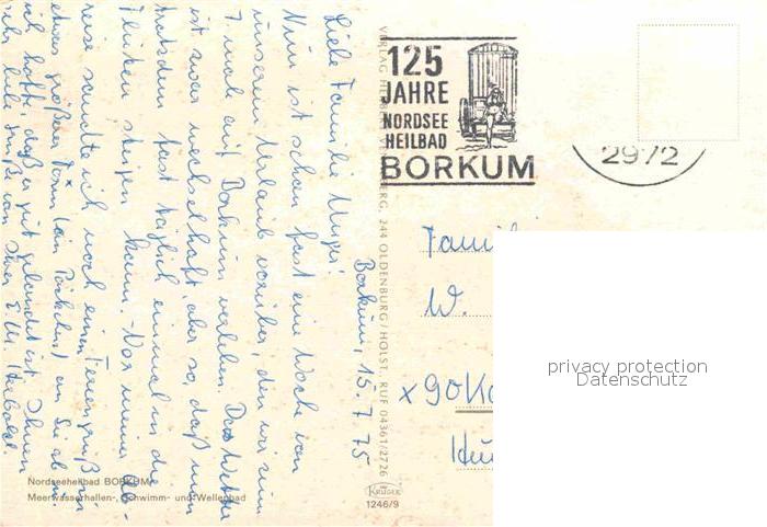 72616758 alte Postkarte BORKUM Nordseebad Niedersachsen Meerwasser Hallenschwimmbad Bahnhof Pavillon Fliegeraufnahme postalisch gelaufen Erhaltung siehe scans [WerneD78] KatCode: 11110003457002