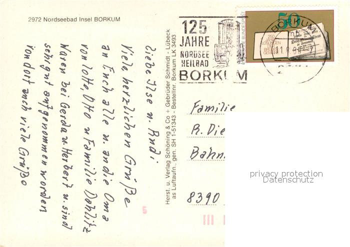 73649932 BORKUM Nordseebad Niedersachsen Nordseeinsel Fliegeraufnahme postalisch gelaufen Erhaltung siehe scans [FriedD77] alte Postkarte Frie Katcode 11110003457002