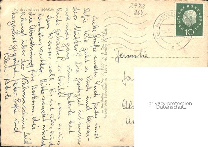 72603502 alte Postkarte BORKUM Nordseebad Niedersachsen Strand Hotels Fliegeraufnahme postalisch gelaufen Erhaltung siehe scans [FriedD77] KatCode: 11110003457002