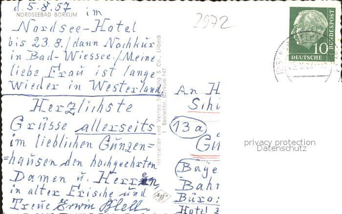 41587036 BORKUM Nordseebad Niedersachsen Strand Nordsee-Hotel postalisch gelaufen Handschriftliches Kuerzel auf Karte alte Postkarte Stef Katcode 11110003457002