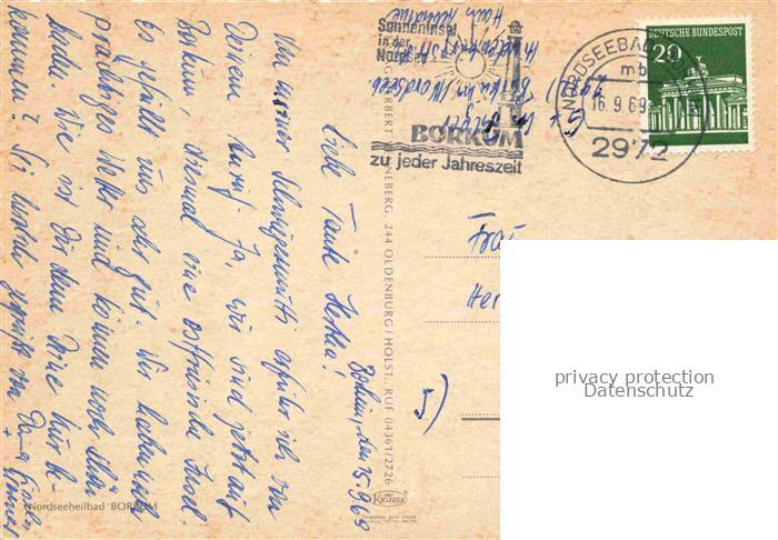 74037697 alte Postkarte Borkum Nordseebad Panorama Nordseeheilbad postalisch gelaufen Fliegeraufnahme Erhaltung siehe scans [FriedD77] KatCode: 11110003457002