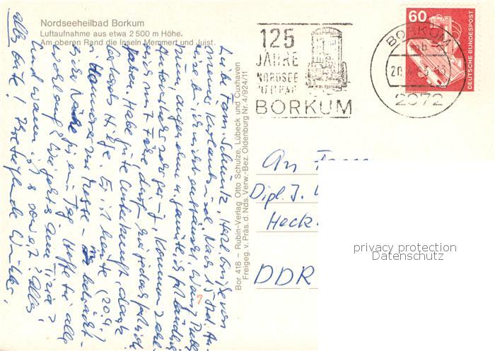 73752436 alte Postkarte Borkum Nordseeheilbad Fliegeraufnahme postalisch gelaufen Erhaltung siehe scans [WerneD78] KatCode: 11110003457002