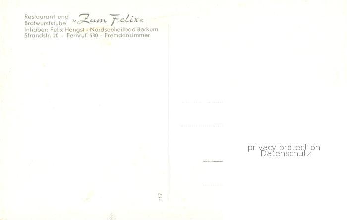 73297063 Borkum Restaurant Zum Felix Urkunde Siegel postalisch nicht gelaufen Erhaltung siehe scans [FriedD77] KatCode: 11110003457002