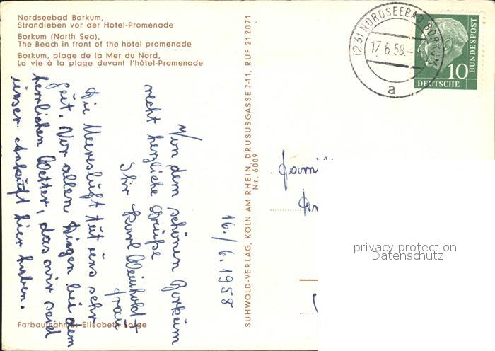 alte Postkarte Borkum Strand Hotel-Promenade postalisch gelaufen Erhaltung siehe scans