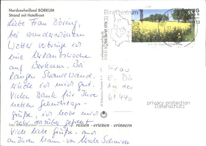 alte Postkarte Borkum Strand Hotelanlagen postalisch gelaufen Erhaltung siehe scans