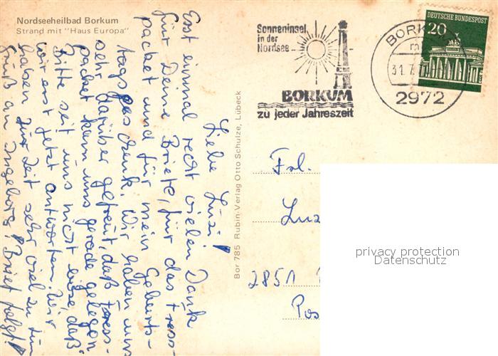 73173701 alte Postkarte Borkum Strand und Haus Europa postalisch gelaufen Erhaltung siehe scans [LiesaD40] KatCode: 11110003457002