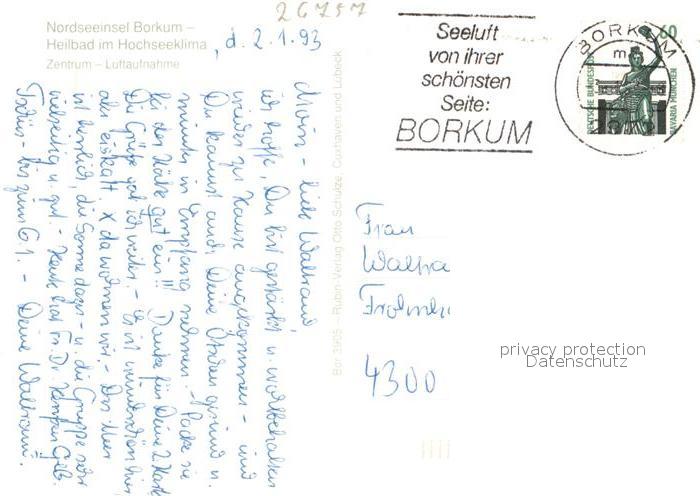 73323028 alte Postkarte Borkum Zentrum Fliegeraufnahme postalisch gelaufen Erhaltung siehe scans [FriedD77] KatCode: 11110003457002