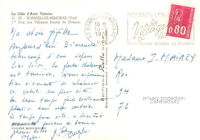 13786422 Bormes-les-Mimosas 83 Var Prix des Villages fleuris de France Port postalisch gelaufen Erhaltung siehe scans [FriedD77] carte postale Frie Katcode 11170083283019