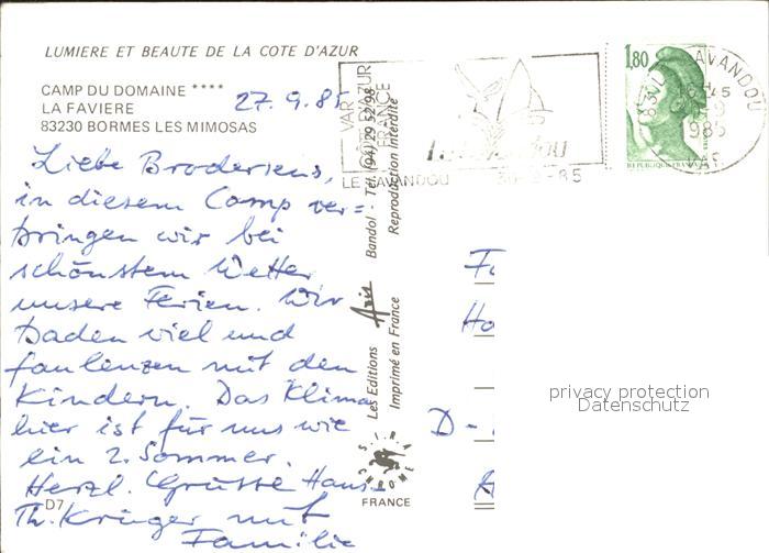 12038131 carte postale Bormes-les-Mimosas Camp du Domaine postalisch gelaufen Erhaltung siehe scans KatCode: 11170083283019