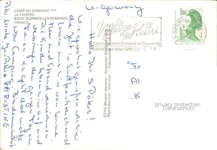 12035479 carte postale Bormes-les-Mimosas Camp du Domaine postalisch gelaufen Erhaltung siehe scans KatCode: 11170083283019