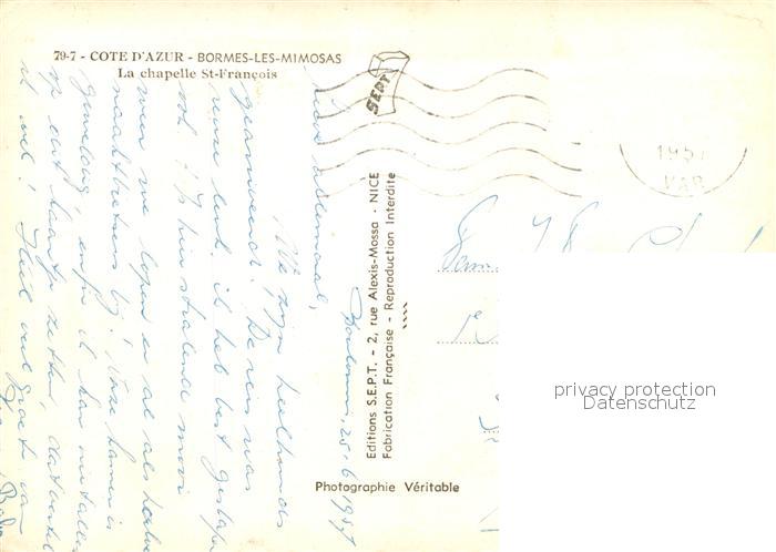 12957082 carte postale Bormes-les-Mimosas Chapelle Saint Francois postalisch gelaufen Erhaltung siehe scans [FriedD77] KatCode: 11170083283019
