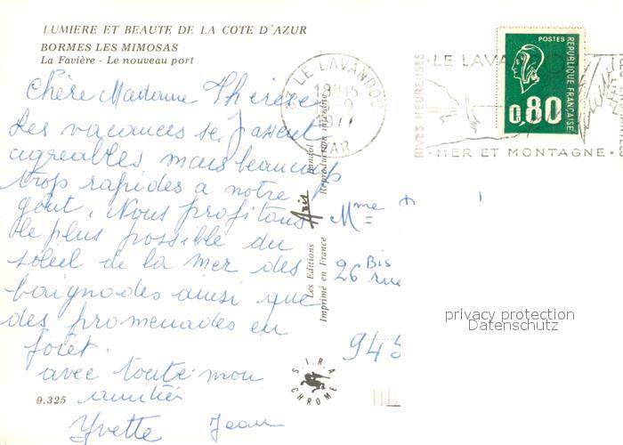 13572957 carte postale Bormes-les-Mimosas La Faviere Le nouveau port postalisch gelaufen Erhaltung siehe scans [WerneD78] KatCode: 11170083283019