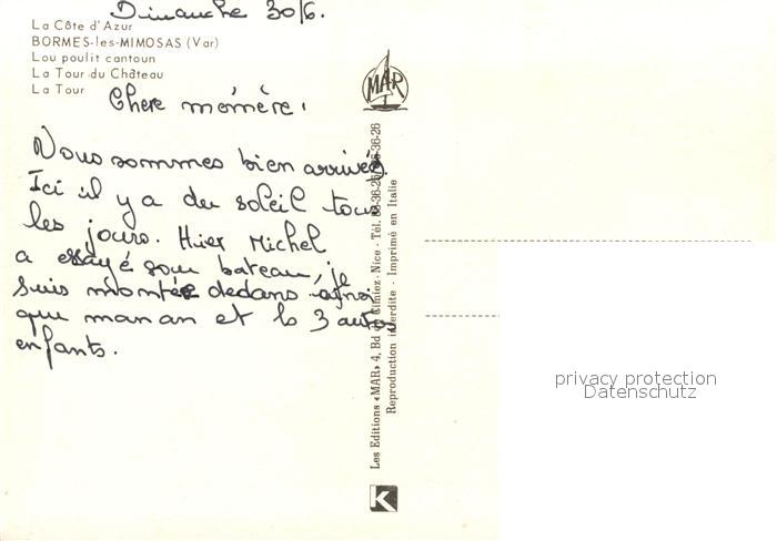13213701 Bormes-les-Mimosas Lou poulit cantoun La Tour du Chateau La Tour postalisch nicht gelaufen Erhaltung siehe scans [WerneD78] KatCode: 11170083283019