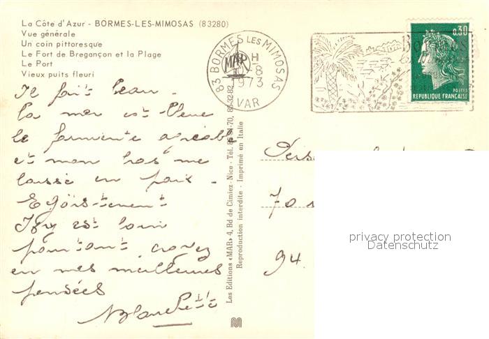 13213712 Bormes-les-Mimosas Vue generale Un con pittoresque Le Fort de Bregancon et la Plage Le Port Vieux puits fleuri KatCode 11170083283019