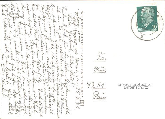 71955793 alte Postkarte Borna Marktplatz postalisch gelaufen Erhaltung siehe scans KatCode: 11110014379100