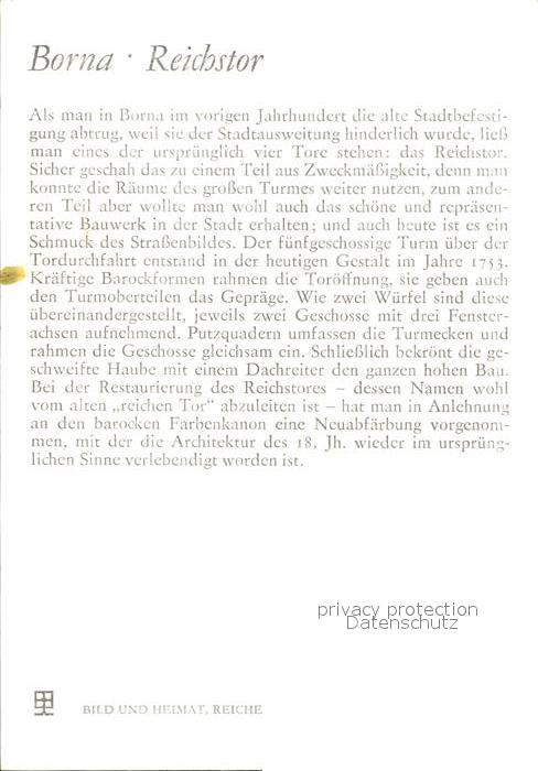 72115915 Borna Reichstor postalisch nicht gelaufen Keine Postkarte (siehe scan) Erhaltung siehe scans KatCode: 11110014379100