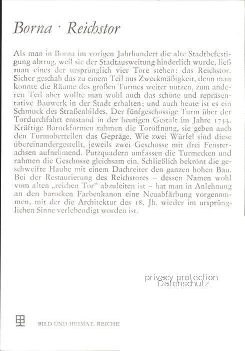 72115792 Borna Reichstor postalisch nicht gelaufen Keine Postkarte (siehe scan) Erhaltung siehe scans KatCode: 11110014379100