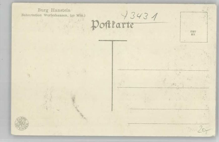 40218351 Bornhagen Burg Hanstein ungelaufen ca. 1920 KatCode 11110016061014