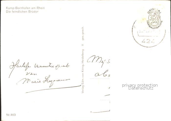 72254696 alte Postkarte Bornhofen Kamp Die feindlichen Brueder Serie Romantische Burgen am Rhein postalisch gelaufen Erhaltung siehe scans KatCode: 11110007141066