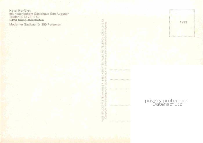 72810739 Bornhofen Kamp Hotel Kurfuerst Gaestehaus San Agustin postalisch nicht gelaufen Erhaltung siehe scans [NatalD47] KatCode: 11110007141066